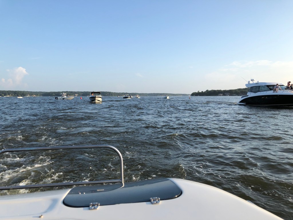 I’ve been on Grand since 2002. We bought our first boat in 2009, sold it, and bought our current model in 2016. Just like all other boaters, we’re here for fun and laughs. We take the kids out, pull them around the tube, and then head to a cove and swim.