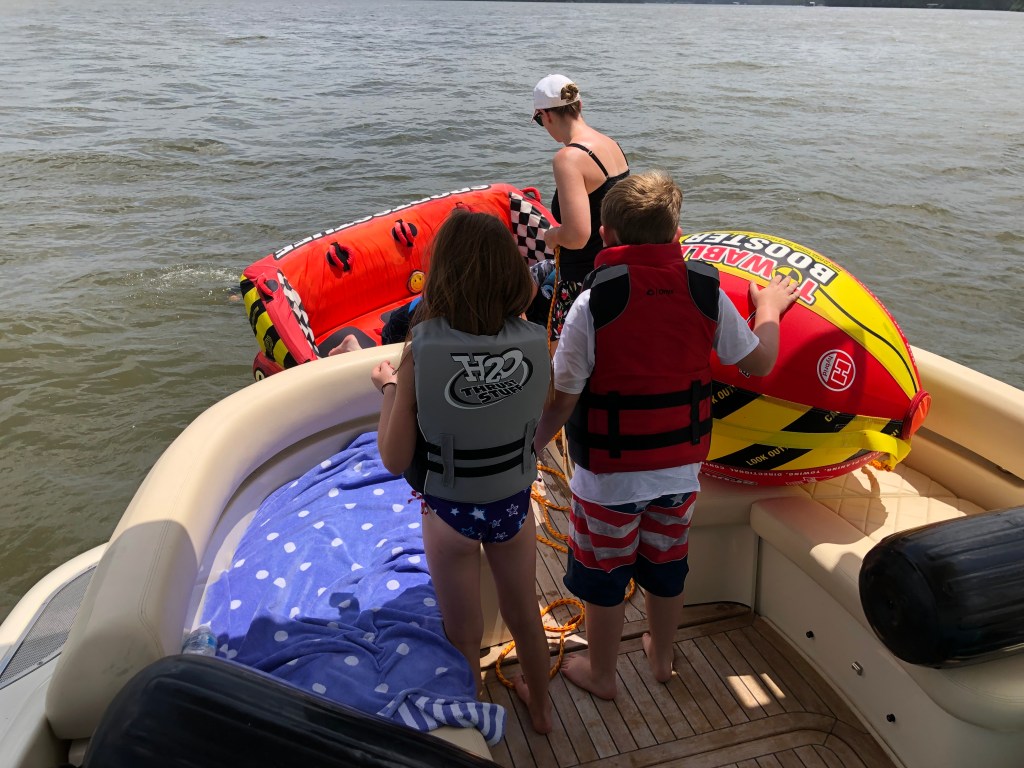 What the wife and I learned was; pulling up anchor or reeling in the tube line, then drying the kids off, and then drive the boat somewhere for lunch took a huge bite out of the day. We wanted to stay on the water and maximize the fun. Who wouldn’t?